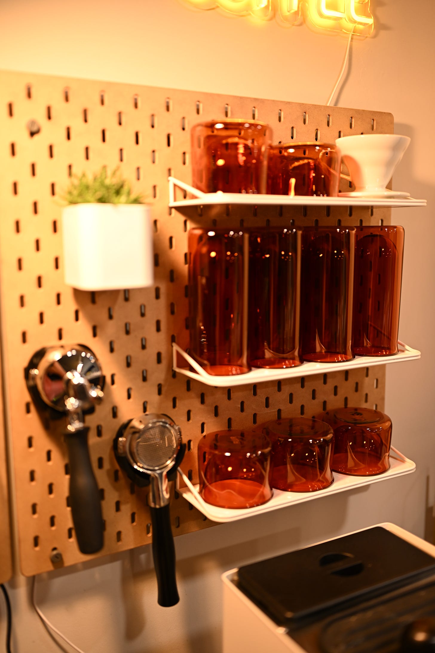 For the color, we went with Amber. They offer clear, purple, and smoke to name a few, but we both agreed amber fit our aesthetic best. It has a distinct 70s soulful vibe that looks especially sharp when filled with a dark espresso drink.